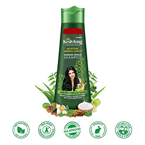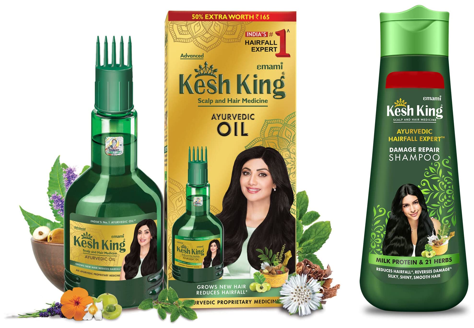 HomeHealth & PersonalHair CareHerbal Hair OilKesh King Ayurvedic Anti Hairfall Hair Oil, 300ml & Emami Kesh King Damage Repair Shampoo with Milk Protein and 21 Ayurvedic Herbs, 340ml