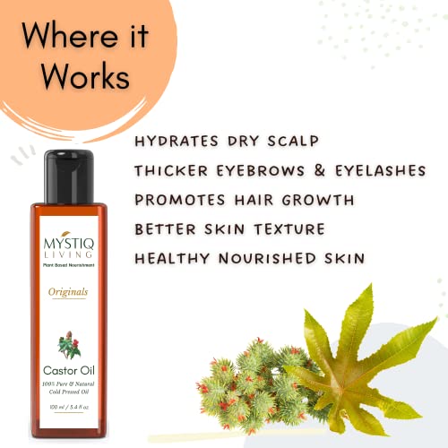 Mystiq Living Combo of Castor Oil & Neem Oil for Hair and Skin Care | Pressed 100% Pure & Natural - 200 ML (Pack of 2) - 100 ML Each