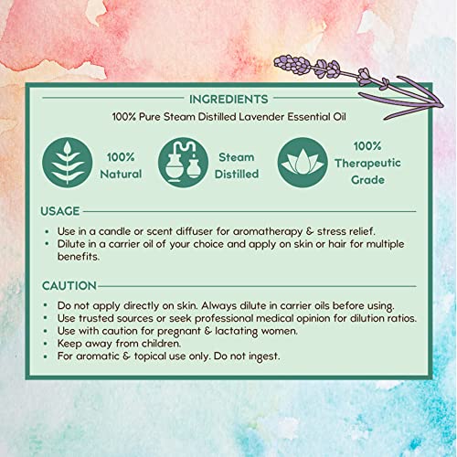 Use In Candle or Diffuser For Stress & Fatigue Relief :The calming scent of Lavender oil can help reduce anxiety and uplift your mood creating a sense of well-being.