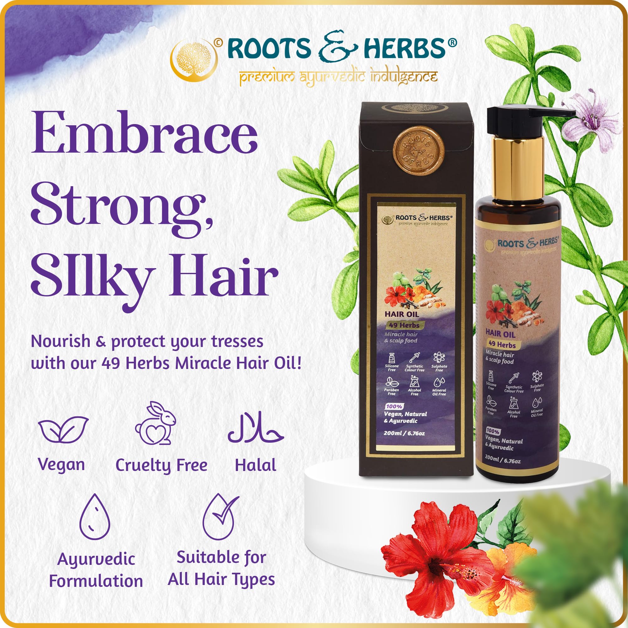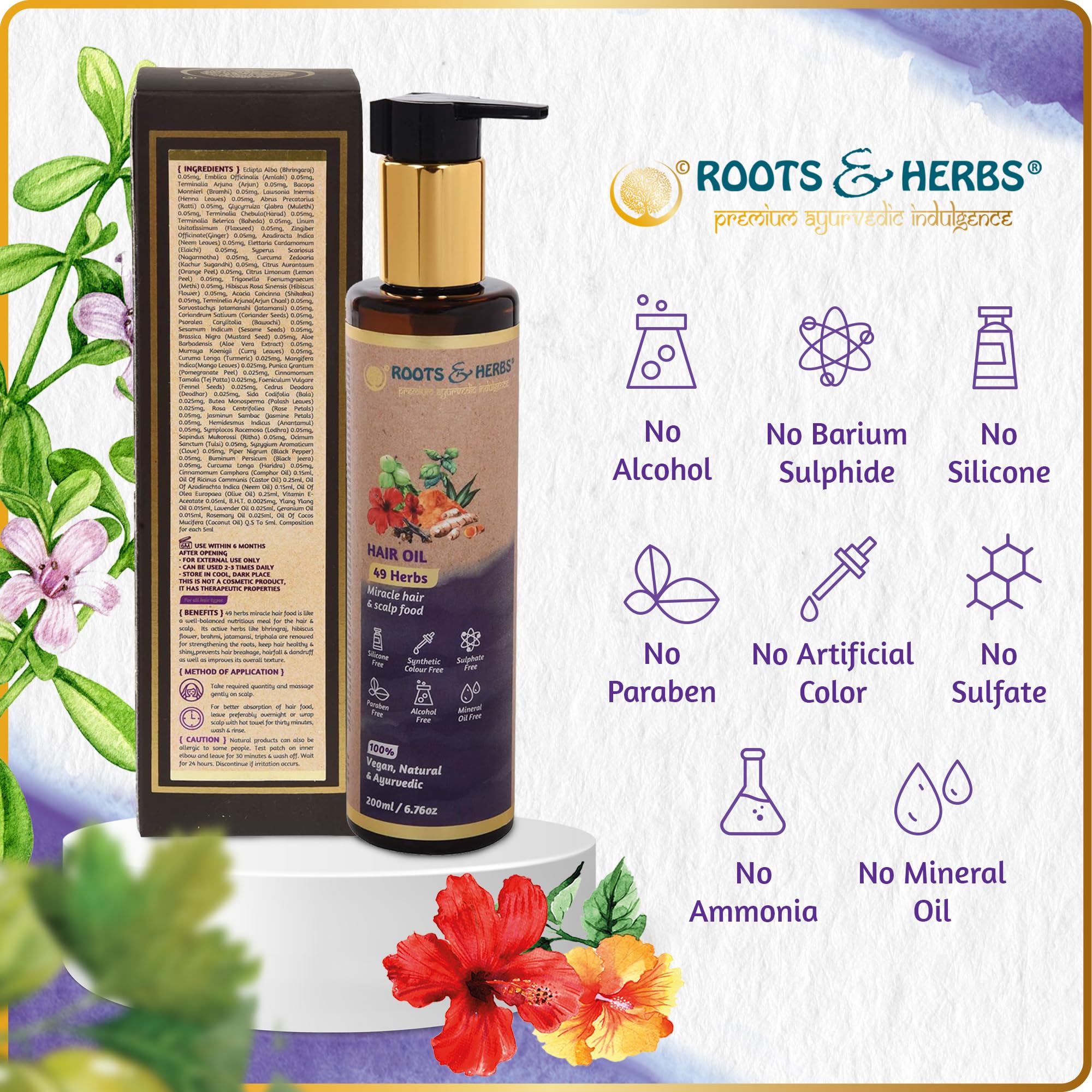 ROOTS AND HERBS 49 Herbs Hair Oil - Herbal Hair Treatment - Hair Food Scalp Moisturizer for Strengthening Roots- Serum for Dandruff Treatment - Beauty Products for Silk Hair Care