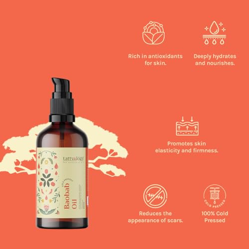 Tattvalogy African Baobab Oil | Cold Pressed Oil | For Face & Body | To Nourish & Heal Damaged Skin, Eliminate Under-Eye Bags, Fight Inflammatory Skin Conditions, Boost Collagen Production (15ml)
