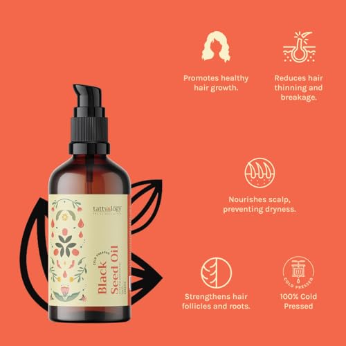 Tattvalogy Pure Black Seed Oil | Cold Pressed Kalonji Oil | For Hair & Scalp | Eliminates Dry Hair, Premature Greying of Hair, Sun Damage & Itchy Scalp | Rich Essential Nutrients & Vitamins (100ml)