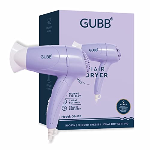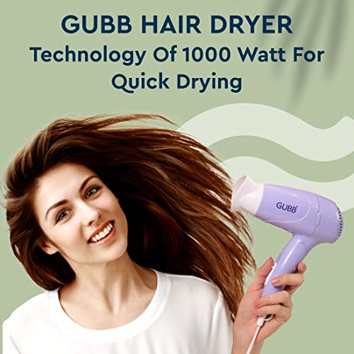 HomeHealth & PersonalHair CareHair StylingGUBB Hair Dryer For Men & Women | Professional Blow Dryer With Foldable Handle and Detachable Nozzle | 2 Heat Settings | 1000 Watts With Overheat Protection, Purple