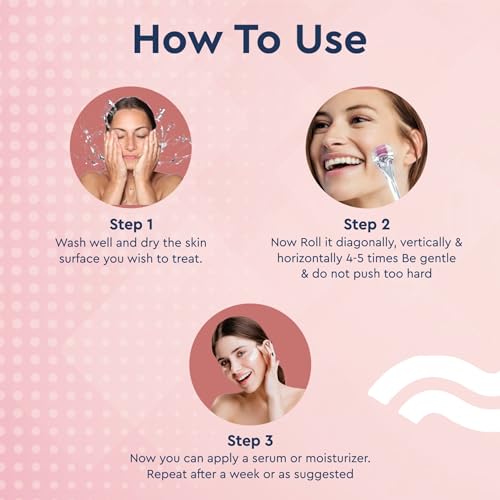 GUBB Derma Roller 0.5mm for Face - Microneedling Tool for Acne Scars,Wrinkles,Beard Growth Stimulator,Skin Rejuvenation,Stretch Marks,Glowing Skin and Hair Regrowth - Transparent Pink