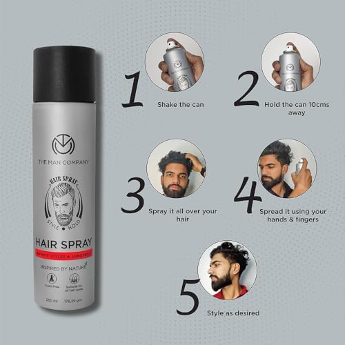 HomeHealth & PersonalHair CareHair StylingThe Man Company Hair Styling Spray For Men 250Ml | Strong Hold, Long Lasting, Matte Look & Instant Grip | Natural Shine, Non-Stick, Ultra Hard