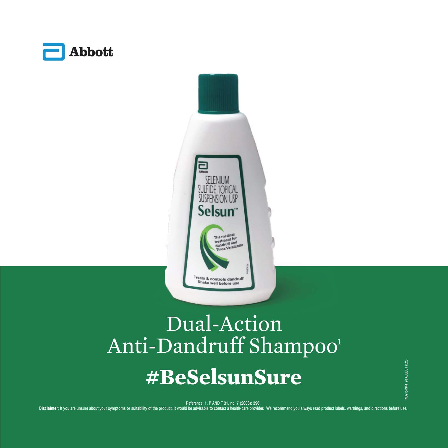 An effective anti-dandruff solution was launch by Abbott in 1951; Breaks the dandruff chakravyuh through its 5 key actions. It controls excessive oiliness targets fungi causing dandruff controls flaking clears away build- up of flakes and relieves from it