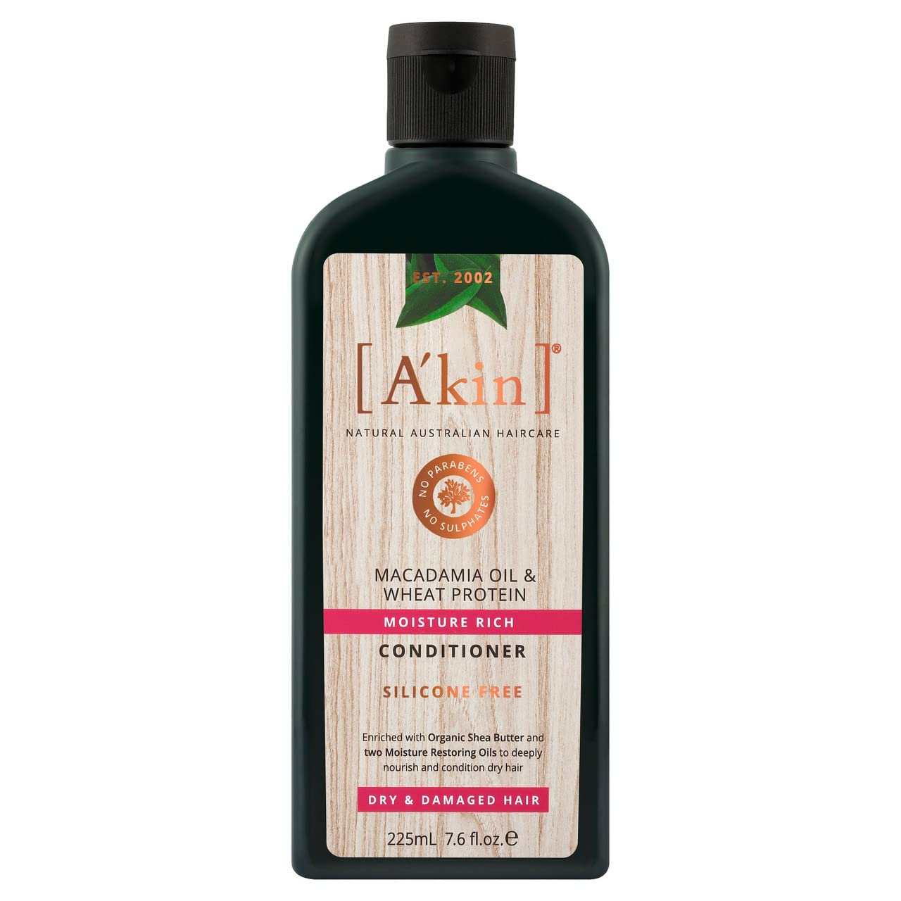 A'kin Macadamia & Wheat Protein Moisture Rich Conditioner Free From Parabens Sulfates and Silicones 225 ml