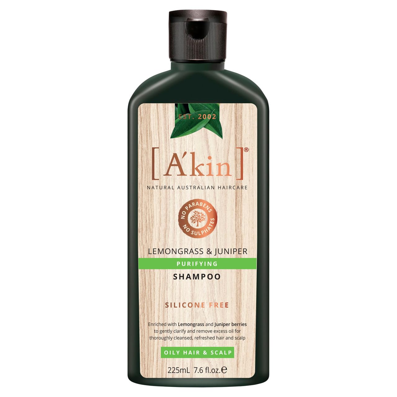 A'kin Natural Purifying Lemongrass & Juniper Shampoo For Oily Hair & Scalp No Paraben No Sulphate & Silicone Free 225 ml
