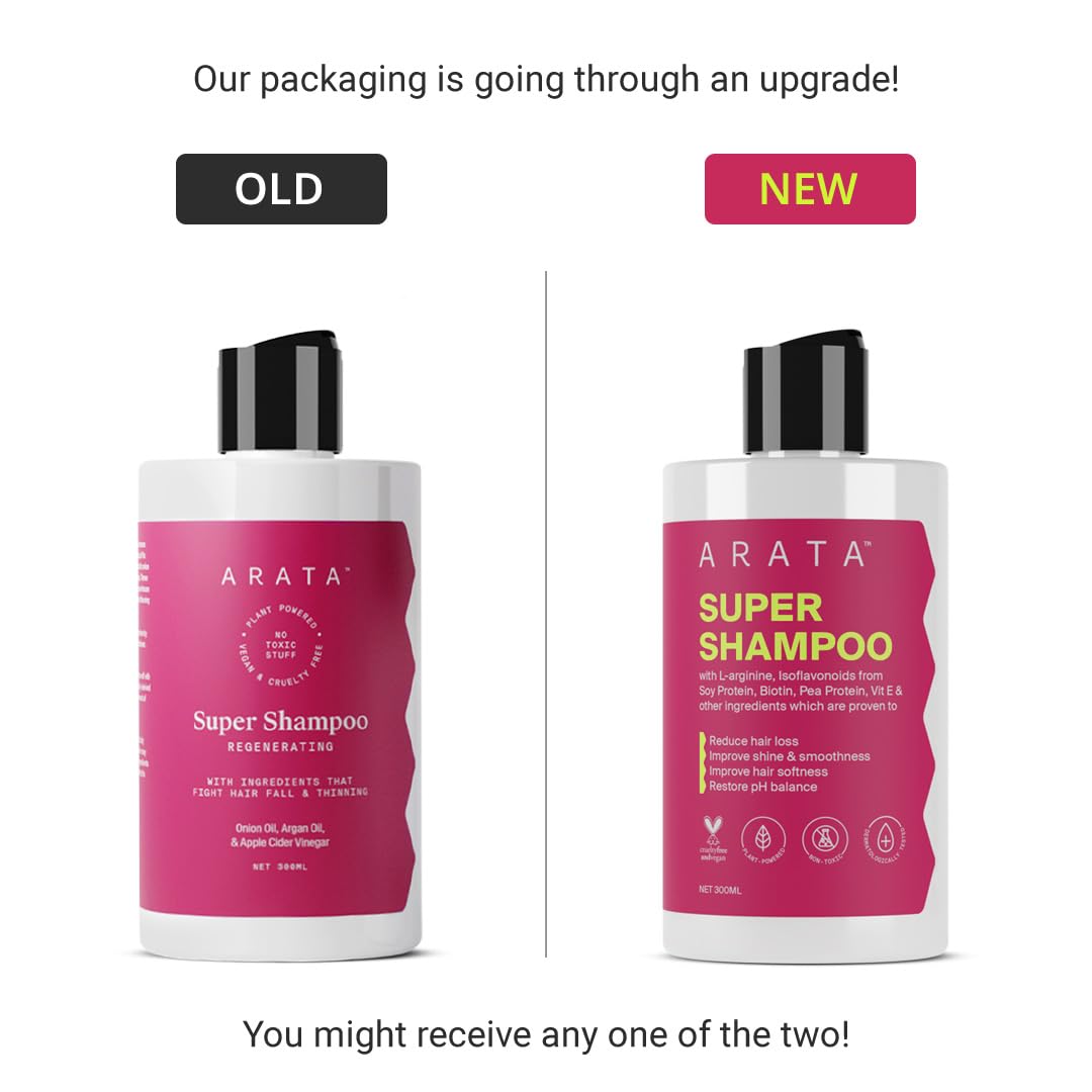 Arata 6-in-1 Super Shampoo | Prevents Hair loss | Restores pH Balance | Boosts Hair Thickness | Reduces Breakage | Fights Microbial Infections | Adds Shine | Shampoo For Women & Men | 300 ml