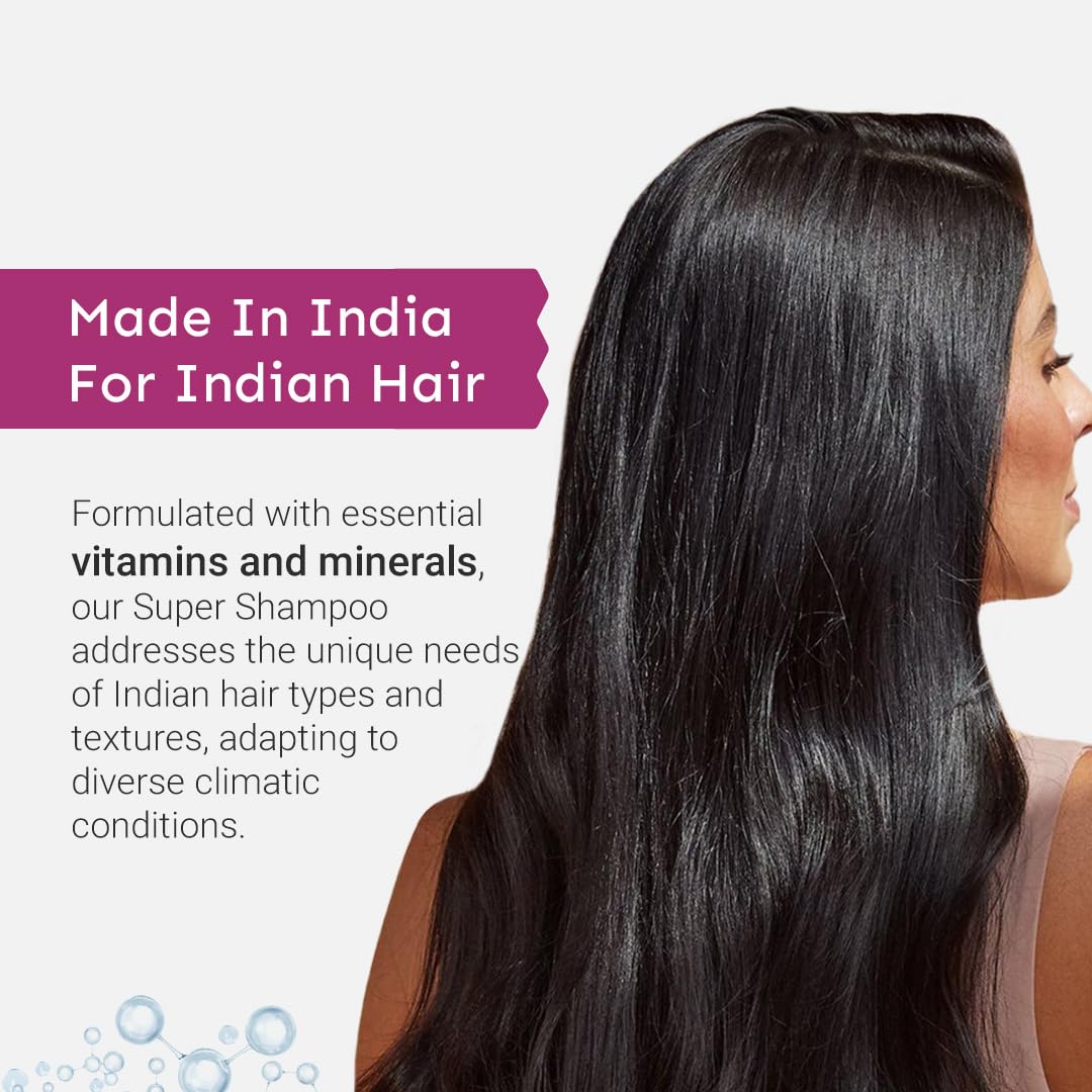 Boosts Hair ThicknessThe Super Shampoo is infused with ingredients that stimulate follicles boost hair growth and also strengthen your hair leading to thicker fuller and voluminous hair.