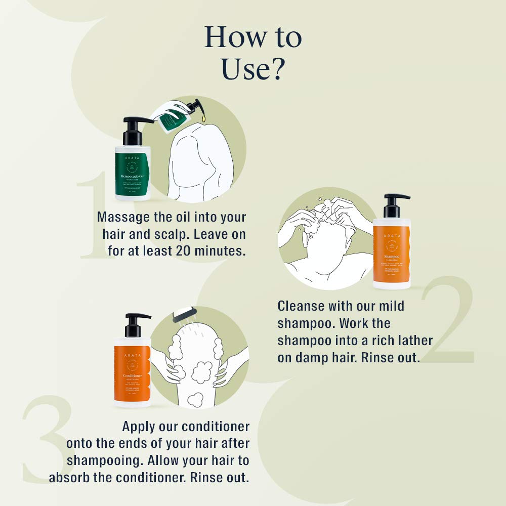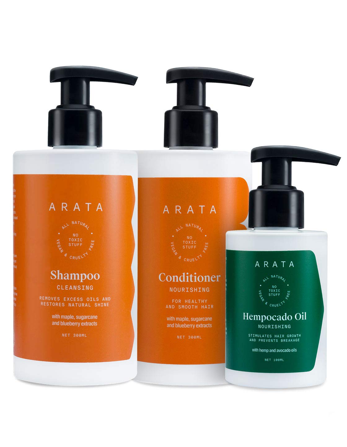 Arata Natural Hair Care Set For Men & Women With Cleansing Shampoo, Hempocado Oil & Hair Conditioner | All-Natural & Cruelty-Free | Plant-Based, Non-Toxic Hair Therapy