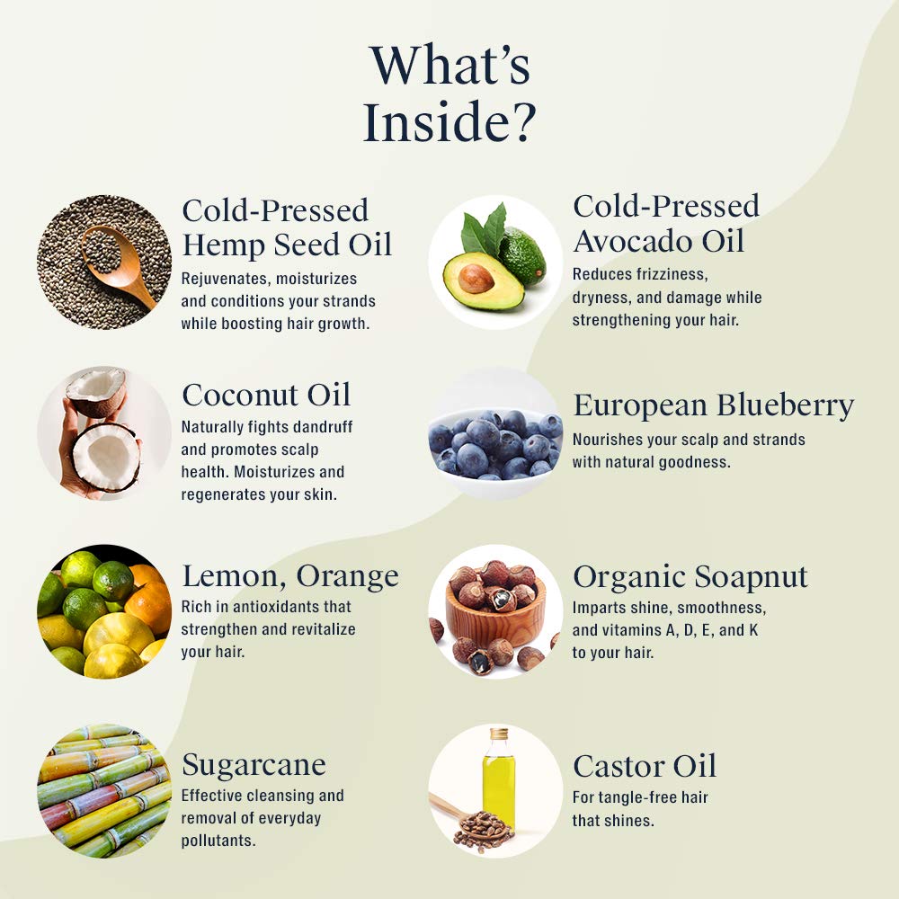 ALL-NATURAL: No SLS Parabens Heavy Metals Triclosan Formaldehyde Phosphates SLES MEA DEA TEA Dyes Caustics. No fear of hair loss hair thinning or hair damage caused by chemical ingredients. Suitable for all genders all age groups and all hair types.