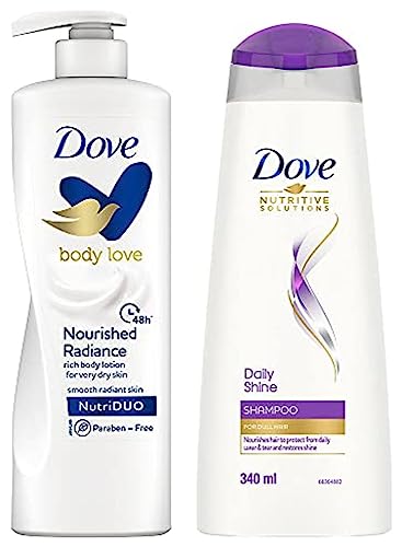 Dove Body Love Nourished Radiance Body Lotion 400ml & Dove Daily Shine Shampoo 340 Ml