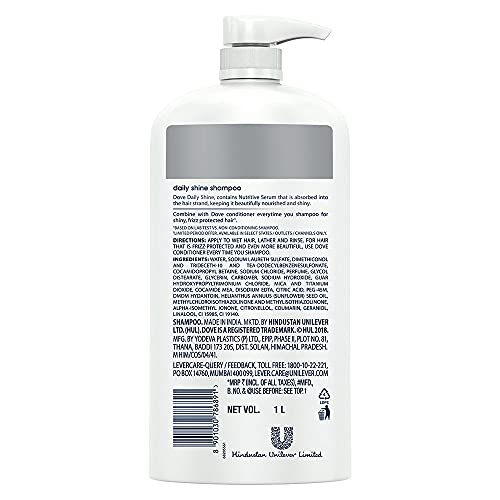 Dove Daily Shine Shampoo 1 L, For Damaged or Frizzy Hair, Makes Hair Soft, Shiny And Smooth & Dove Daily Shine Conditioner, 340 ml