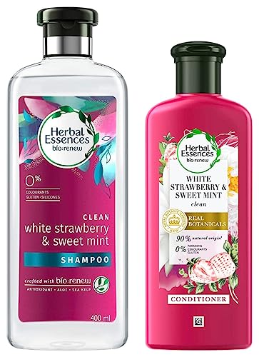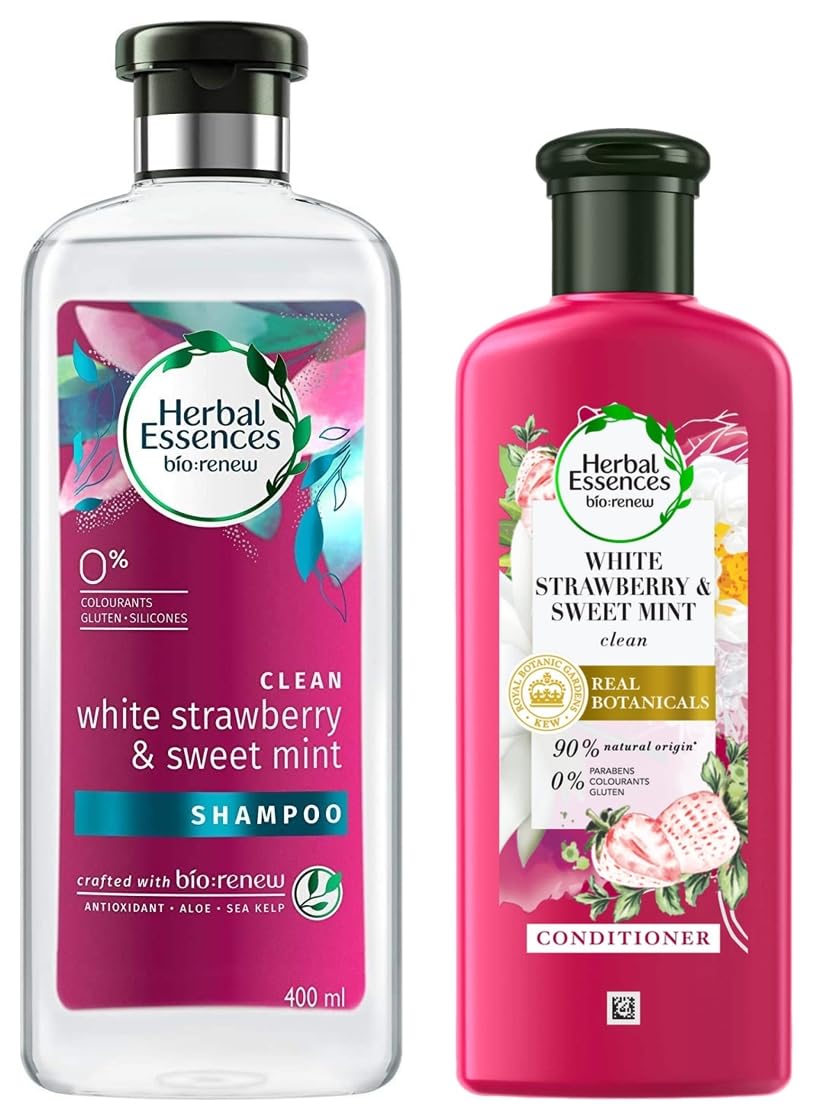 Herbal Essences White Strawberry & Sweet Mint SHAMPOO(400ML) and Strawberry Conditioner, 240ML- Clean and Voluminous Hair. No Parabens, Colourants, Glutens.PETA Cruelty Free Certified