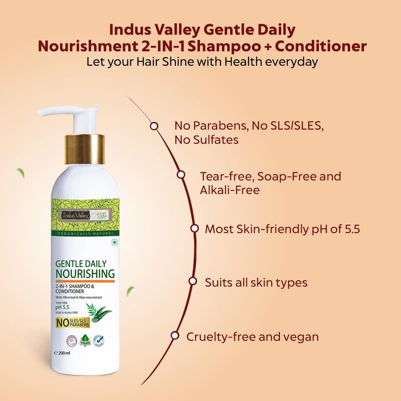 Indus Valley Organic Gentle Daily Nourishing 2-in-1 Shampoo and Conditioner for Dry Scalp, Stimulates Hair Growth, Deep Nourished Shiny Hairs Shampoo (200 ml, Pack of 1)
