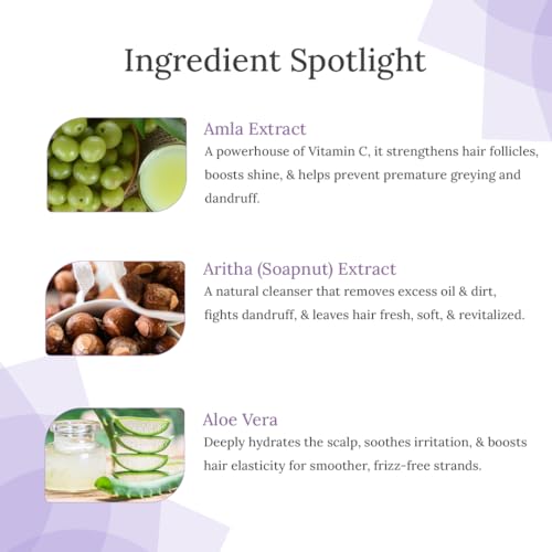 Shikakai has antifungal and antibacterial properties that help reduce dandruff and also help accelerate hair growth. Aloe Vera extract helps soothe the scalp and condition the hair.