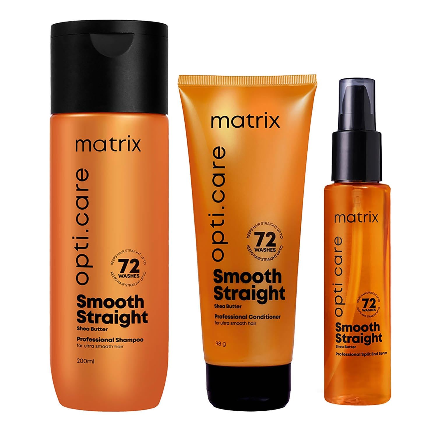 HomeHealth & PersonalHair CareOrganic Shampoos & ConditionersMatrix Opti.Care Professional Shampoo + Conditioner + Serum Combo for Salon Smooth Straight Hair | Control Frizzy Hair for up to 4 Days | With Shea Butter | No Added Parabens (200 ml + 98 g + 100 ml )