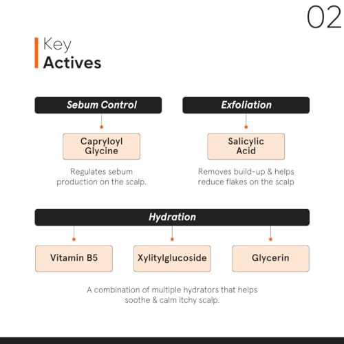 Exfoliation and unclogging pores: Salicylic Acid is a beta-hydroxy acid known for its gentle exfoliating properties it helps in removing dead skin cells and unclogging pores on the scalp providing a fresh and clean feel.