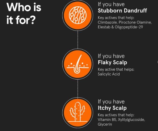 Inhibits Dandruff causing Fungus : Climbazole & Piroctone & Oligopeptide 29 a potent trio of agents tackles the root cause of dandruff