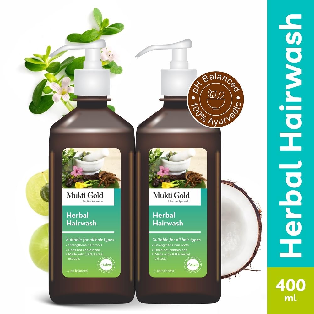 HomeHealth & PersonalHair CareOrganic Shampoos & ConditionersAxiom Herbal Shampoo (Dispenser) - 400mL (Pack of 2) | For All Hair Types | Infused with the Blend of Amla Aloevera and Other 15 Herbs | Sulphate and Paraben Free | Helpful for Both Men and Women