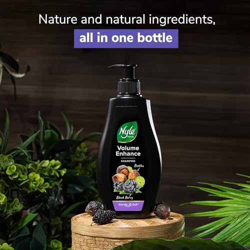Nyle Naturals Volume Enhance Shampoo 1 L, For Long & Voluminous Hair with Blackberry, Reetha, & Amla | pH Balanced & Paraben Free Gentle & Soft Shampoo For Women & Men