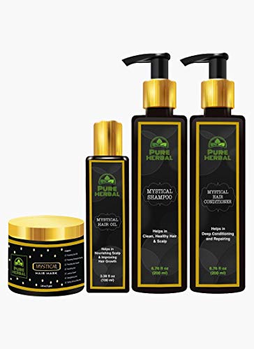 Pure Herbal Mystical Hair Care Combo Hair Oil 100 ML, Hair Mask 75 Gms, Hair Shampoo 200 ML and Hair Conditioner 200 ML Helps to Control Hair falls Dandruff Control For all types of Hair.