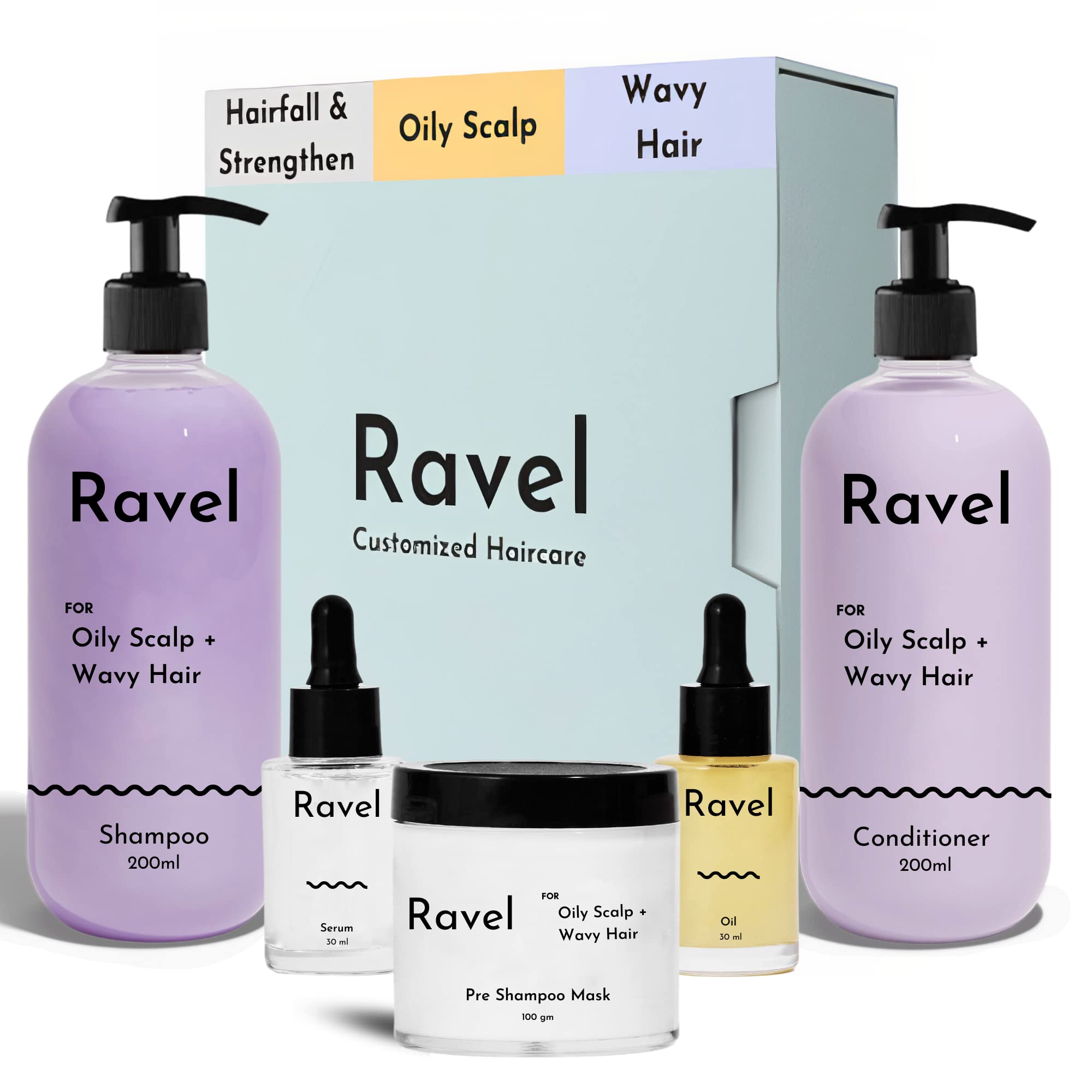 Ravel Customized Hair Fall Control & Strengthen Advanced Regimen for Oily Scalp & Wavy Hair Customized for Dry/Normal/Oily Hair 5 Product kit - Shampoo + Conditioner + Mask + Serum + Oil