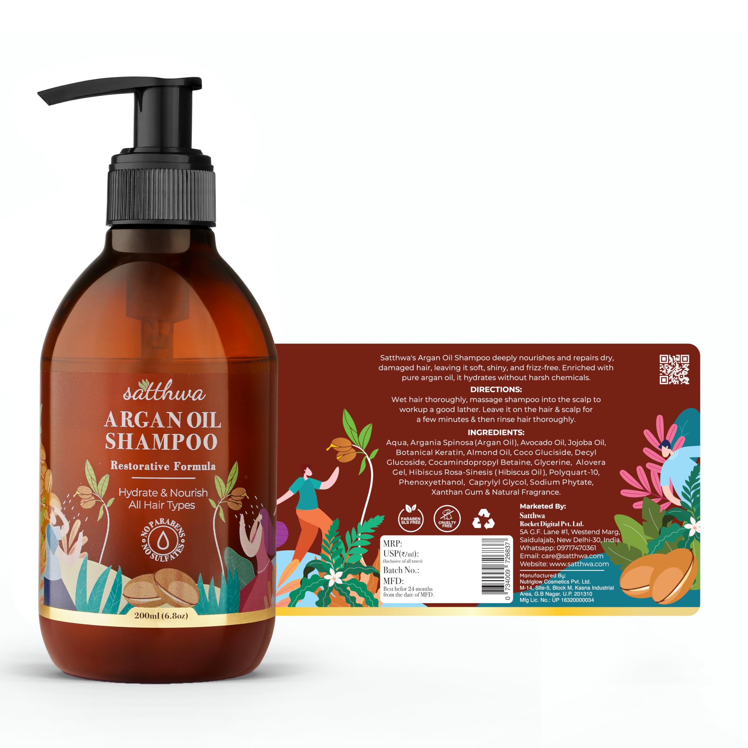 Satthwa Argan Oil Shampoo Helps for Dandruff & Dry Scalp Mild Daily Frizz Free Shiny and Damage Hair - For Men & Women (200ml)