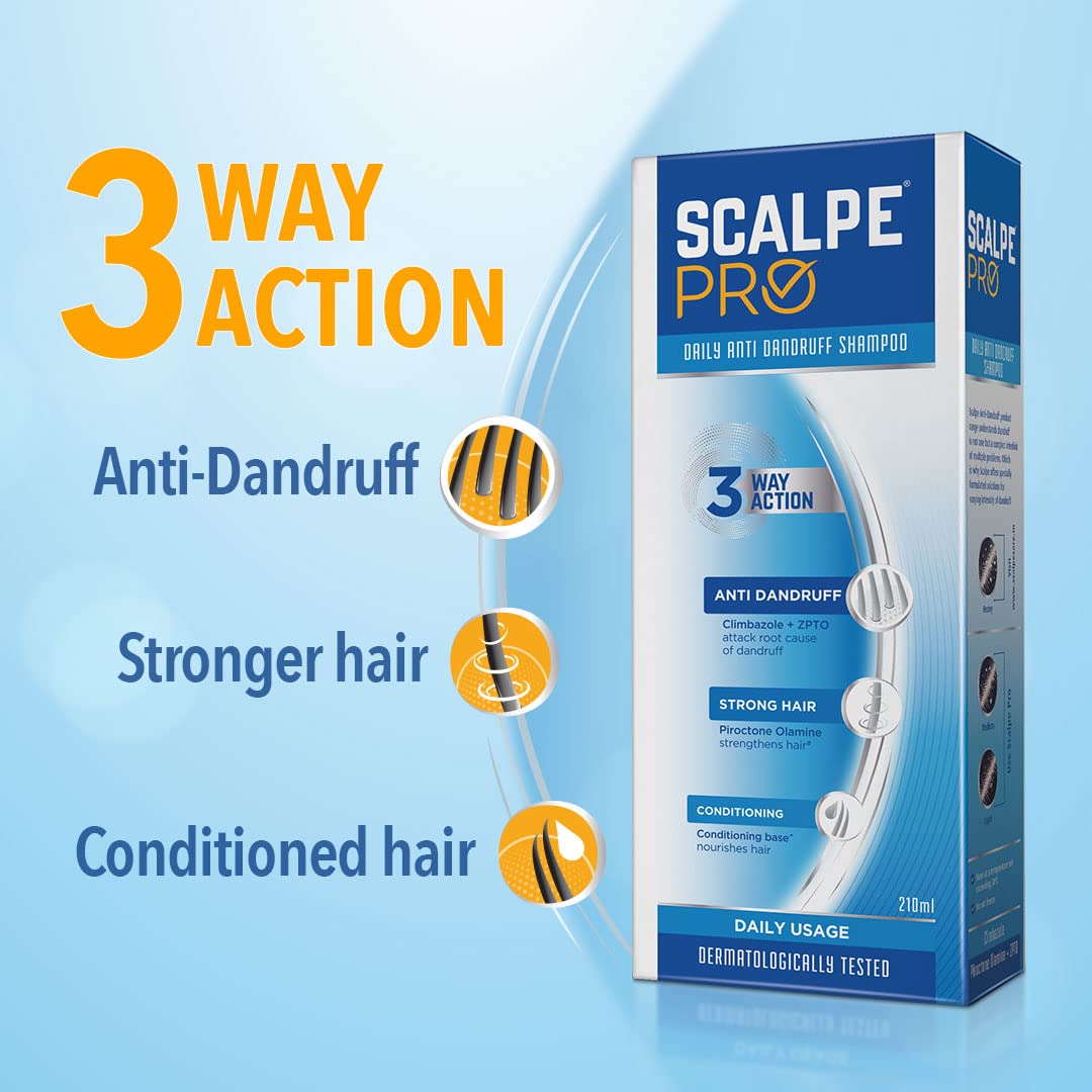 Scalpe Pro Daily Anti-Dandruff Shampoo | Removes Dandruff from Source | Helps with Itching, Irritation & Redness accompanying Dandruff | Scalpe Science | Climbazole & ZPTO Formulation | Strong & Smooth Hair | Daily Use | Dermatologically Tested Solution |