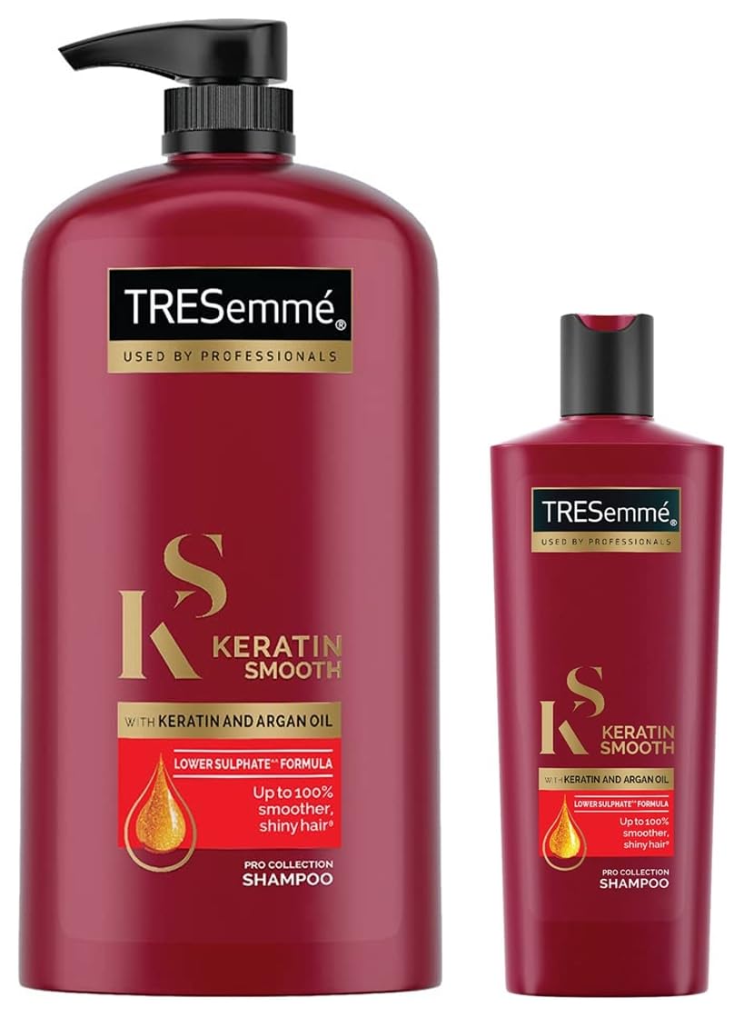 Tresemme Keratin Smooth Shampoo 1 Ltr & TRESemme Keratin Smooth Shampoo 340 ml With Keratin & Argan Oil for Straighter Shinier Hair - Nourishes Dry Hair & Controls Frizz