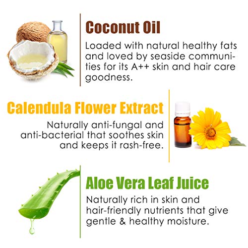 Key ingredients: natural ingredients including coconut oil calendula flower extract xanthan gum aloe vera leaf juice avocado oil vitamin e and pro-vitamin B5