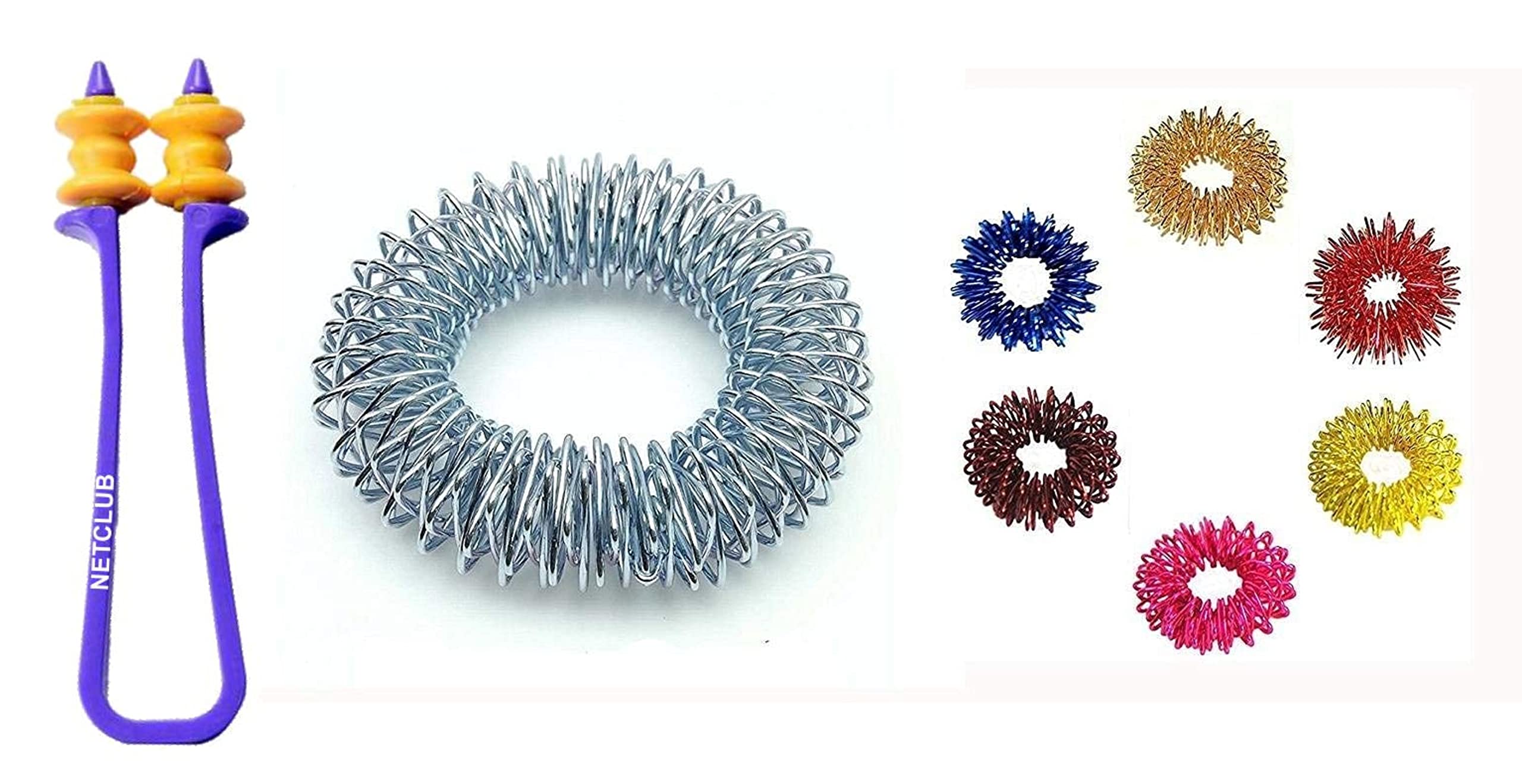 NETCLUB Acupressure kit sujok point fitness kit sujok ring big 1 + finger ring 6 jumbo leg finger care pain stress relief classical massager