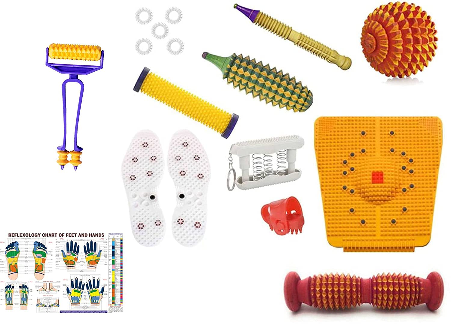 NETCLUB Acupressure kit Sujok Therapy Tools Kit For Stress & Pain Relief With Bio-Magnetic Power Foot yoga Mat & Magnetic Shoe Sole Foot Roller Wooden fitness pain body Massager tummy trimmer workout