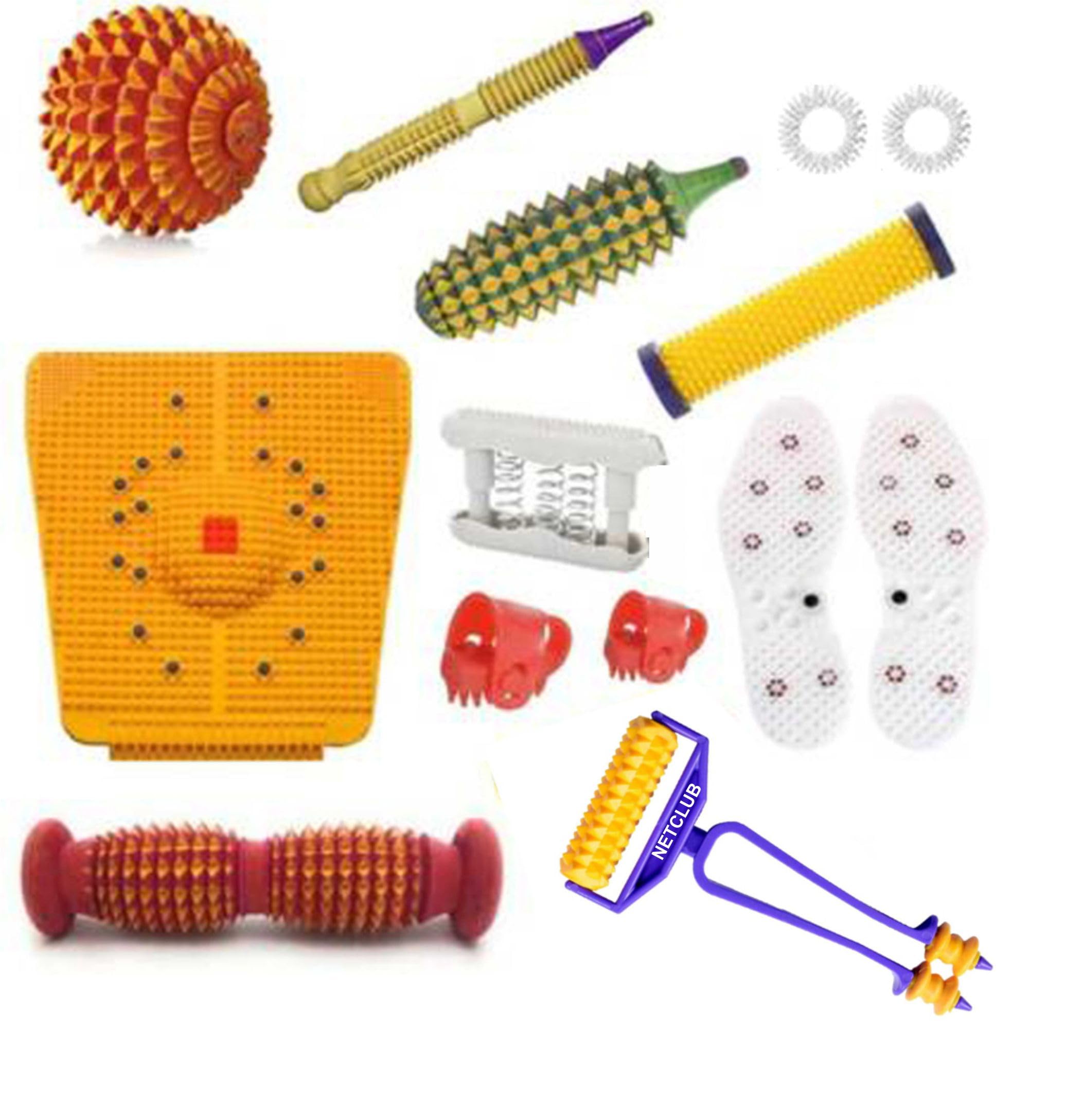 NETCLUB Acupressure Kit Tools Combo Kit Foot Roller Mat Magnetic Therapy Handle Roller Advance Finger Massager Shoe Sole Massage Rings Home Gym Sujok Kit blood circulation sugar control Body massager