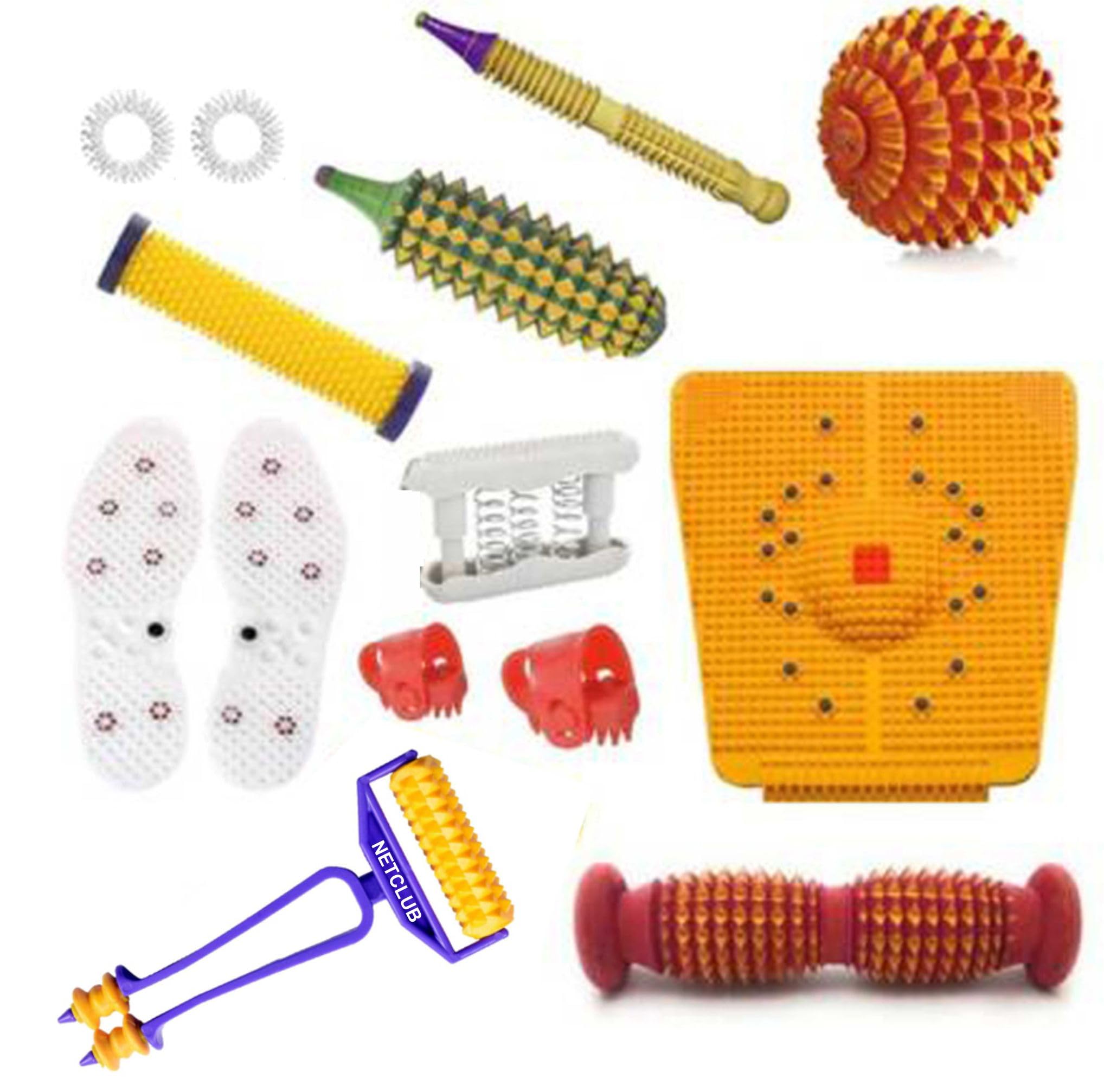 HomeHealth & PersonalHealth & WellnessAcupressureNETCLUB Acupressure kit Tools Combo Kit for stress & pain relief with Foot Roller Wooden Bio-Magnetic Power Foot Mat home gym tummy slimming shaper body Massager