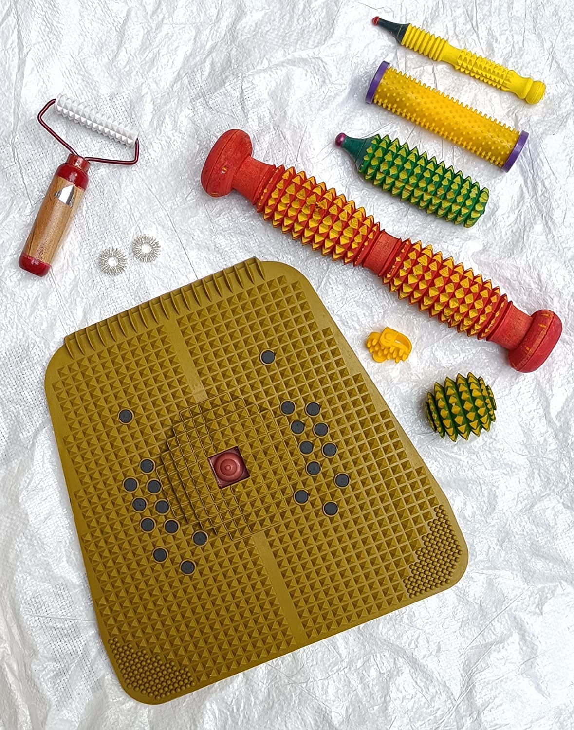 NETCLUB Acupressure Manual Massager Wooden Foot Roller Acupressure Magnetic Stress Mat Combo Kit