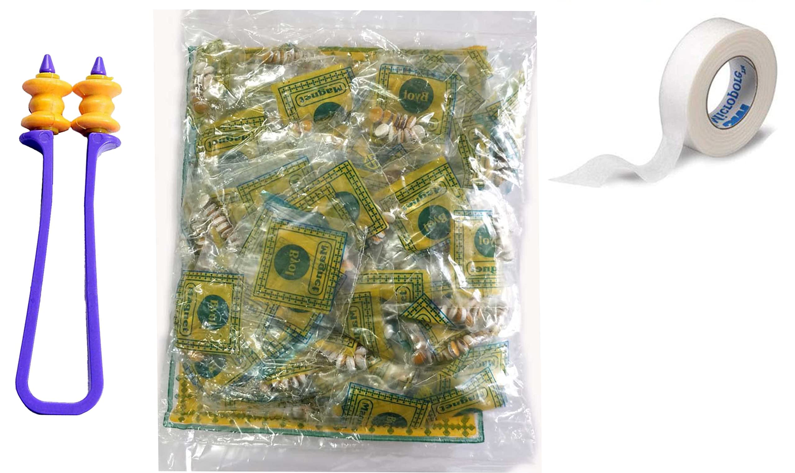NETCLUB Acupressure sujok byol magnet regular medium size 5mm 1000 pc (yellow & White) with tape finger massager fitness kit home gym body massager