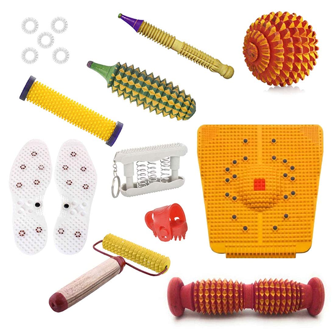 NETCLUB DK34 Acupressure Massager Tools Combo Kit for Stress and Pain Relief with Foot Roller (Pyramidal cuts)(Wooden) Massager (Multicolor)