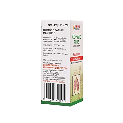 Dr. Bakshi's BAKSON'S Kof Aid Plus SF Syrup 115ml_Pack of 2