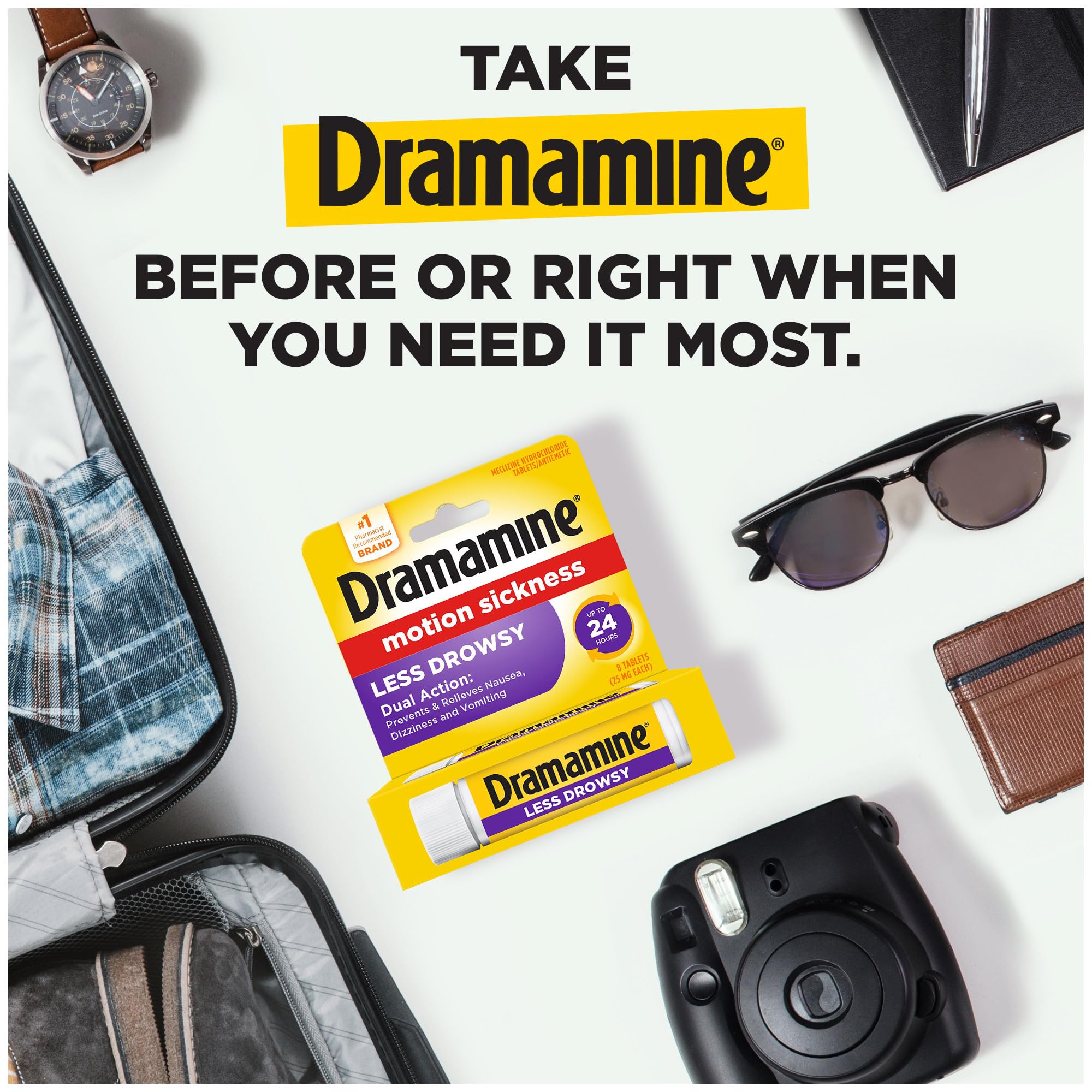 Dramamine is the number 1 pharmacist-recommended brand*; *Named by Pharmacy Times and U.S. News & World Report as number 1 Pharmacist-Recommended Brand for 2022 Motion Sickness Remedies Category