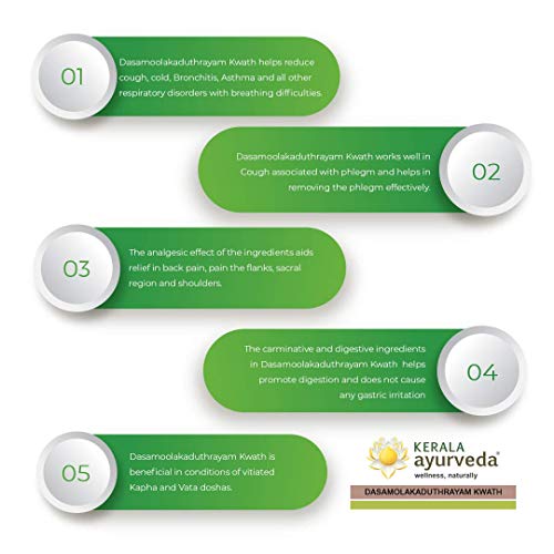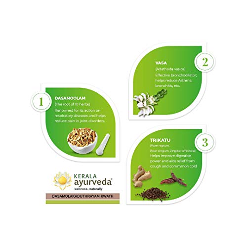Dasamoolakaduthrayam Kwath works well in associated with phlegm and helps in removing the phlegm effectively.