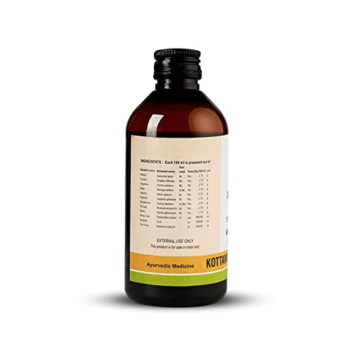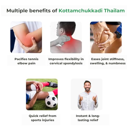 Quantity: 200 ml; Item Form: Thailam; Relief from pain in tennis elbow- Kerala Ayurveda Kottamchukkadi thailam is an ayurvedic oil for pain especially around elbows. It is enriched with soothing Vata pacifying herbs that relieve pain in tennis elbow sprai