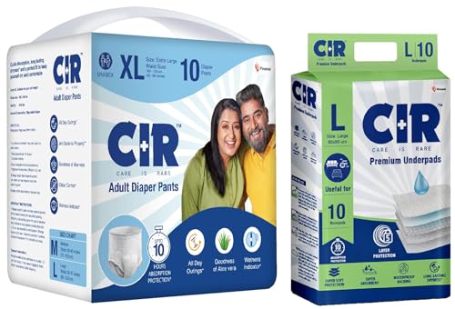 HomeHealth & PersonalPersonal CareAdult DiapersCIR Adult Diaper Pants, Extra-Large (100-150cm I 40" - 59") I 10 Units & CIR Premium Underpads, Large (90x60cm) I 10 hrs Absorption Protection I 10 Unitsx Pack of 1