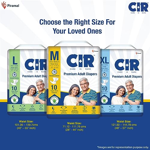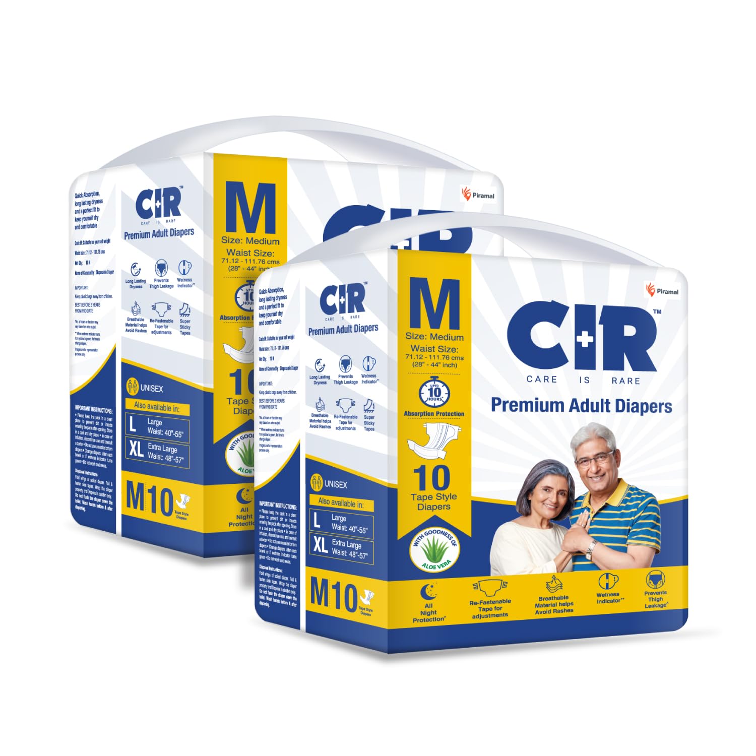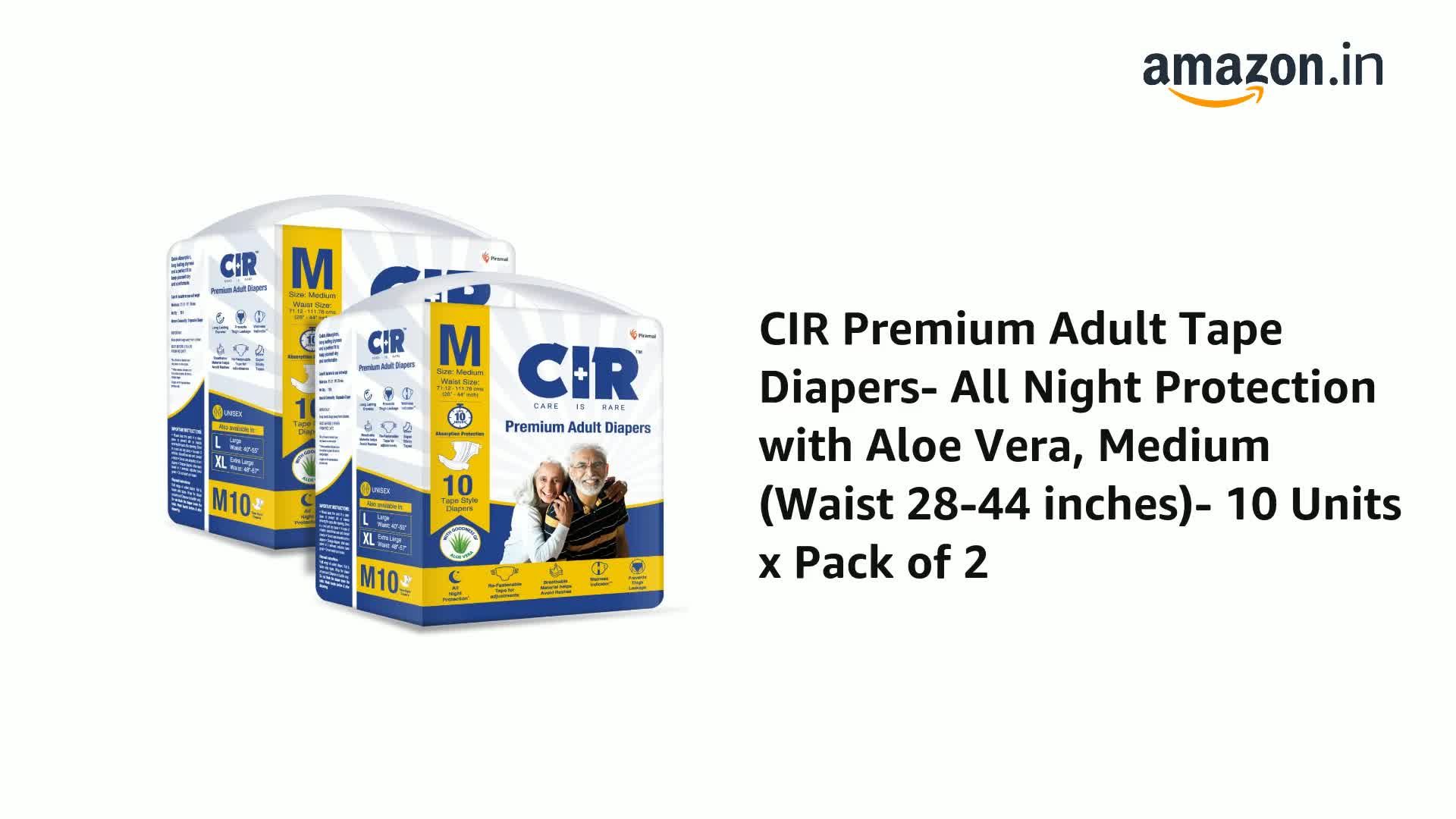 CIR Unisex Premium Adult Diaper-Tape Style All Night Protection With Aloe Vera Medium(M) Size Waist(71-111Cm 28"-44") 20 Units