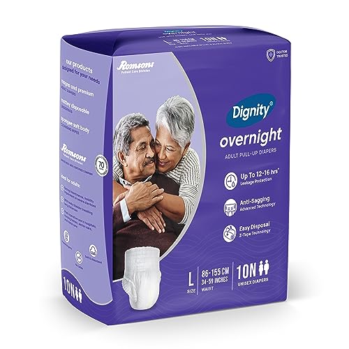 Dignity Overnight Pull Up Adult Diapers Pant Style - 10 Count (Large) with Soft Elastic and Extra Absorbent Core, Waist Size 34" - 59", 10 Pcs/Pack (Pack of 1)