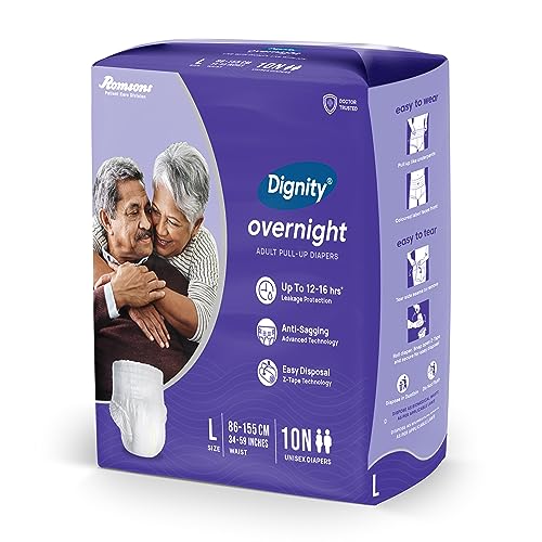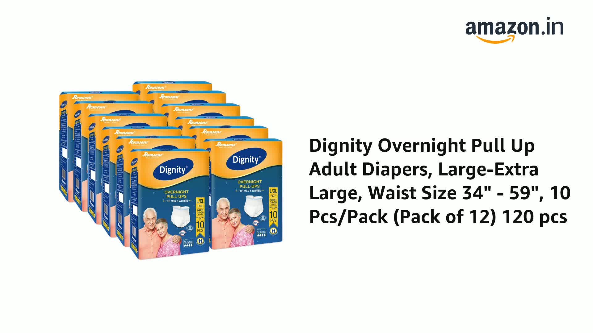 Dignity Overnight Pull-Up Adult Diapers are underwear style diapers designed for involuntary urination or defecation in both men & women. Overnight Pull-Ups provide Protection for up to 12-16 hours.