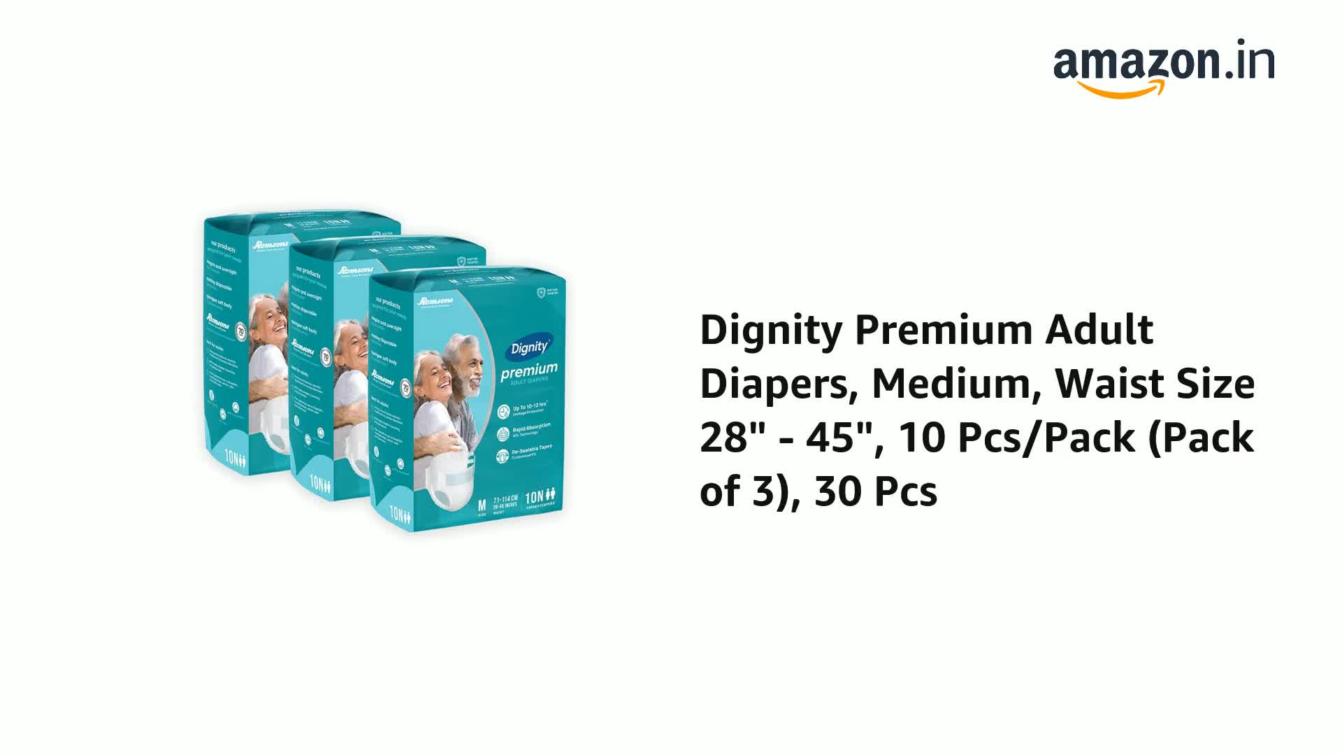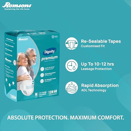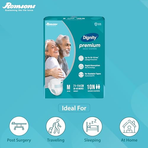 Dignity Premium Adult Diapers are designed for involuntary urination or defecation in both men & women. Premium provides Protection for up to 10-12 hours.