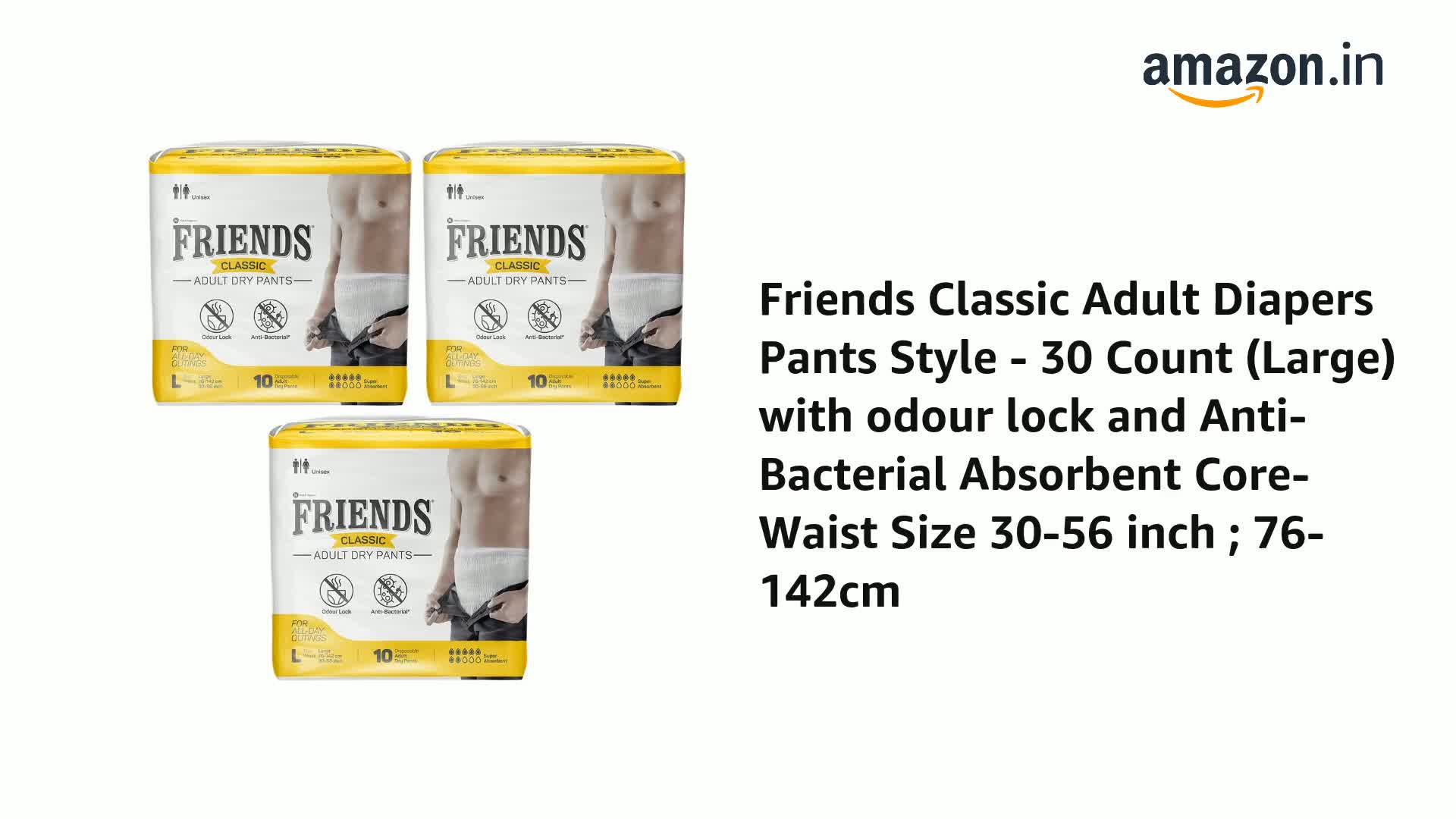 Friends Classic Adult Diapers Pants Style - 30 Count (Large) with odour lock, Unisex, Leakproof, Elastic Waist and Anti-Bacterial Absorbent Core - Waist Size 30-56 inch; 76-142 cm