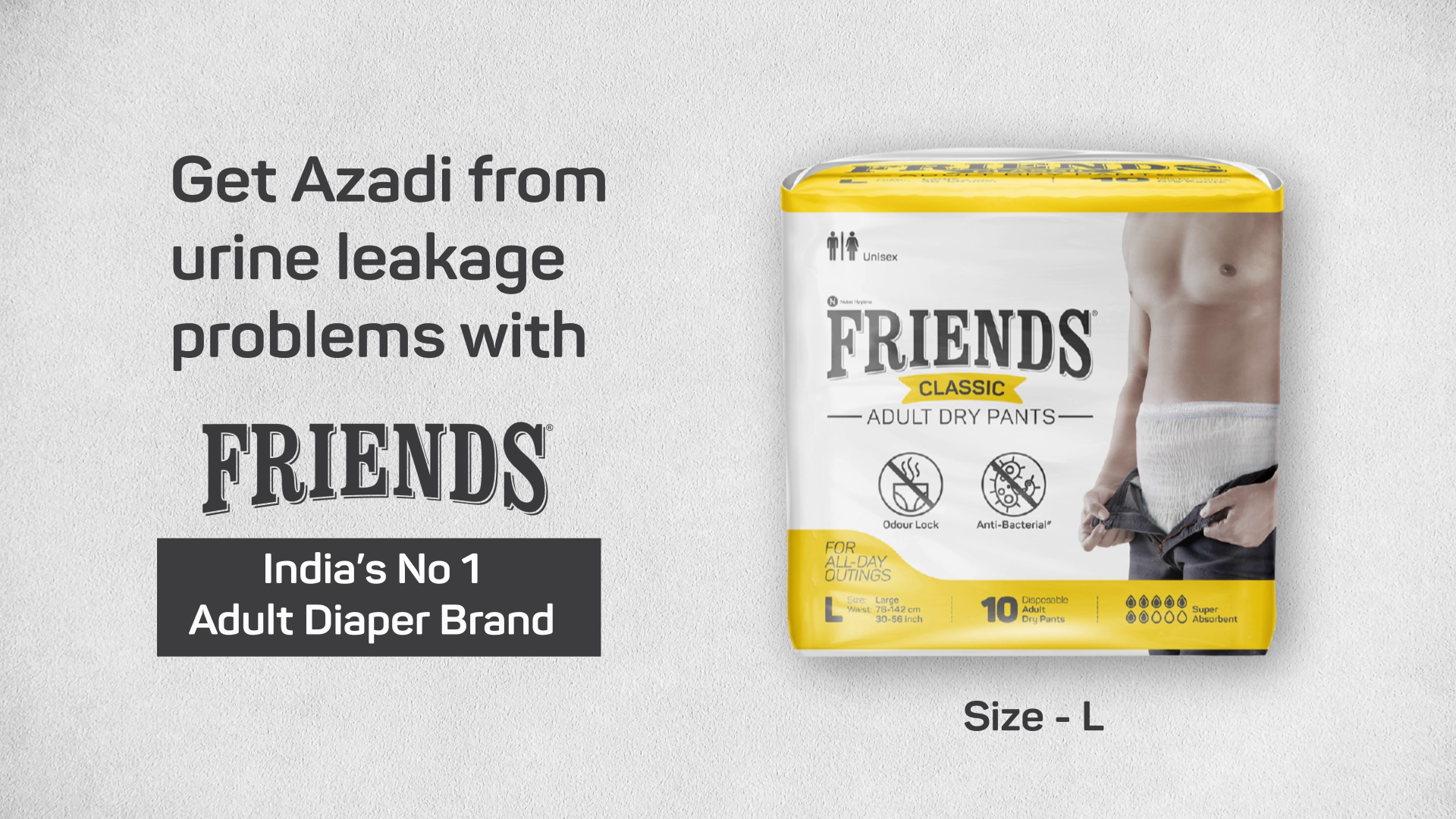 Friends Adult Diapers large size pant style with 8 hours of protection are also available in sizes M XL and XXL.